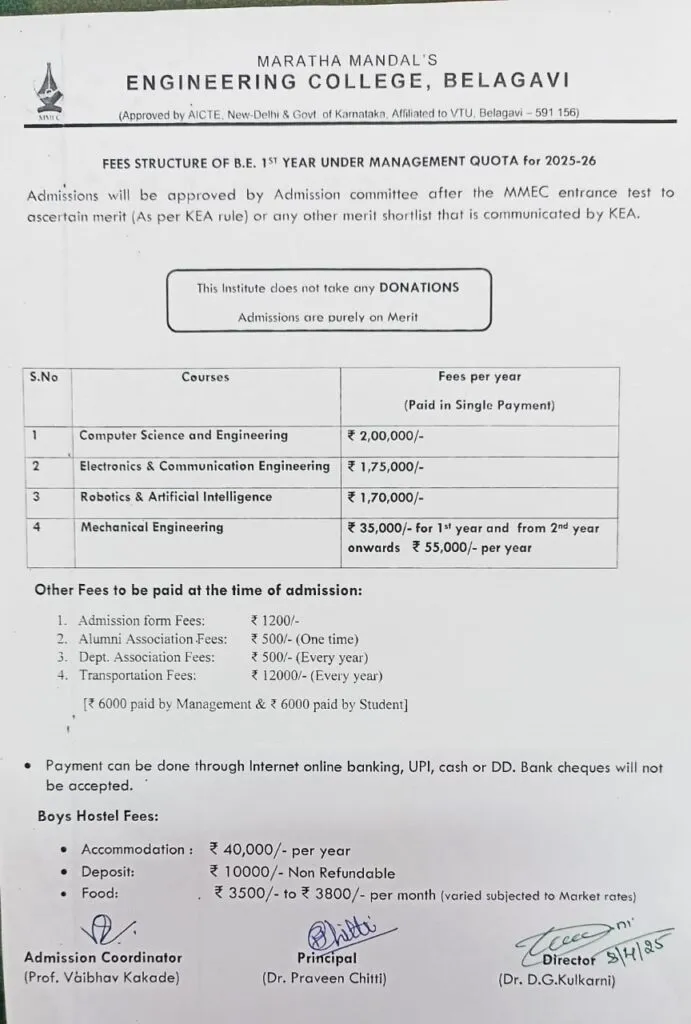 MMEC offers world-class undergraduate courses in Computer Science Engineering, Electronics & Communication Engineering, Mechanical Engineering and Robotics and AI. All courses are delivered under Visvesvaraya Technological University’s (VTU) syllabus. MMEC takes pride in being unique in the way it impart education. Students of MMEC get hands on experience on the subjects they learn as well as the latest technologies prevelant in the industry. Several workshops, industrial tours conducted during the curriculum give our students the right exposure to the industry making them ready for a job. MMEC offers following undergraduate courses in their corresponding branches.